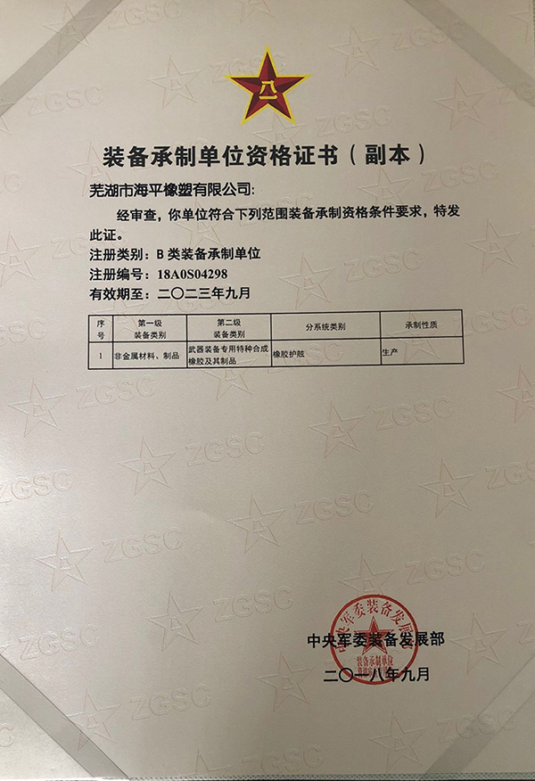 热烈祝贺我公司取得装备承制单位资格证书,从现在开始我公司正式拥有军品生产资格,使公司的发展迈入一个新的台阶。